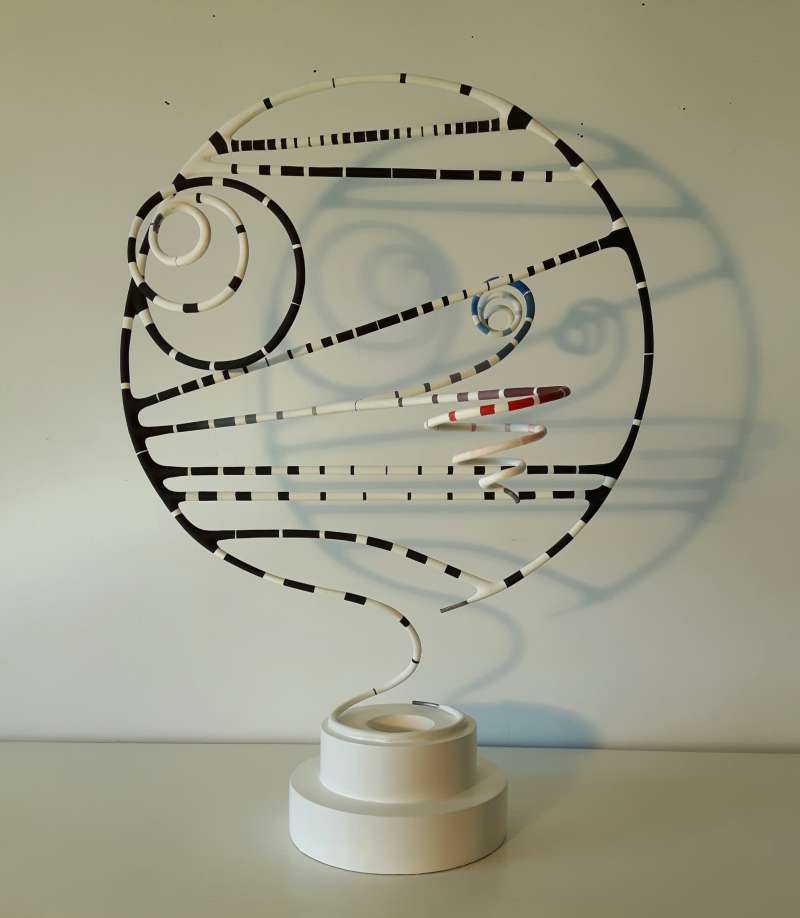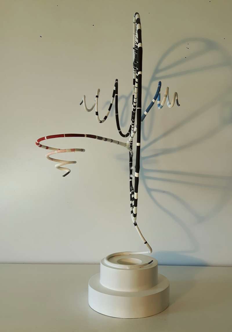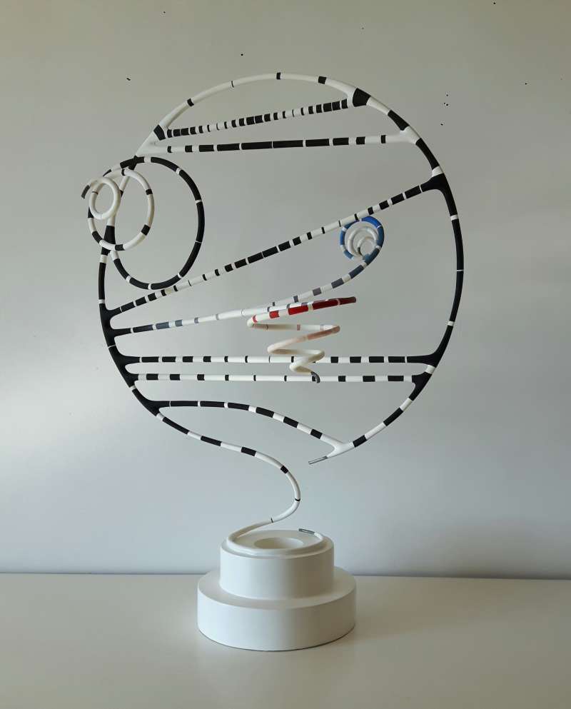 Peinture à l'huile sur toile de lin enduite sur métal, socle en bois peint