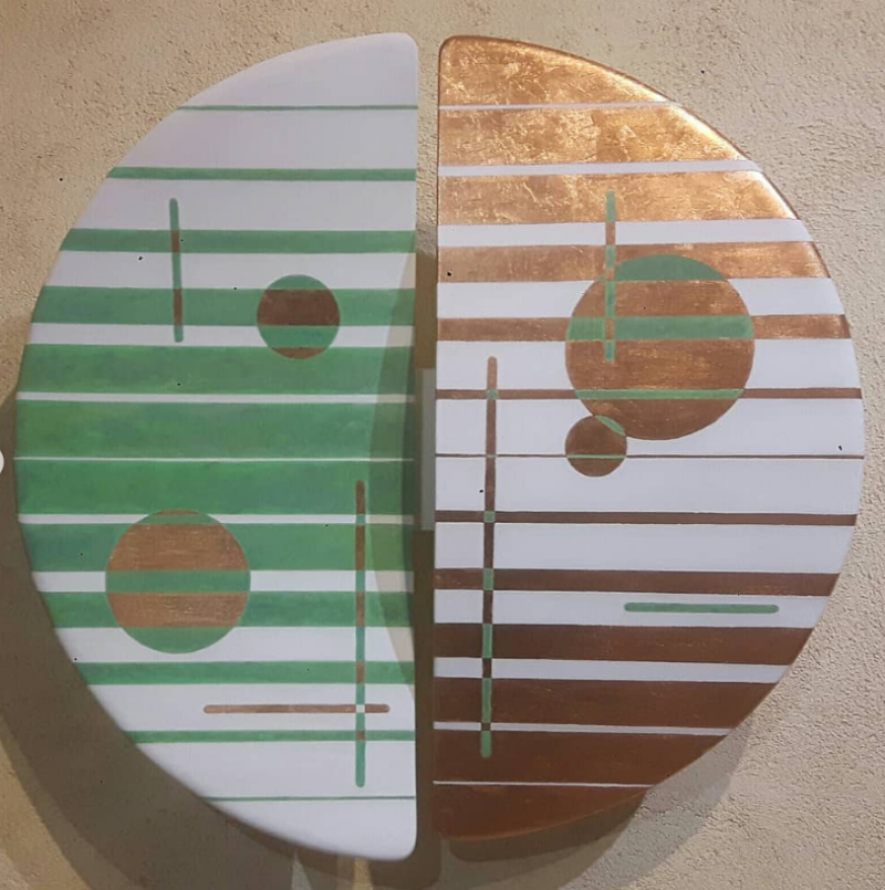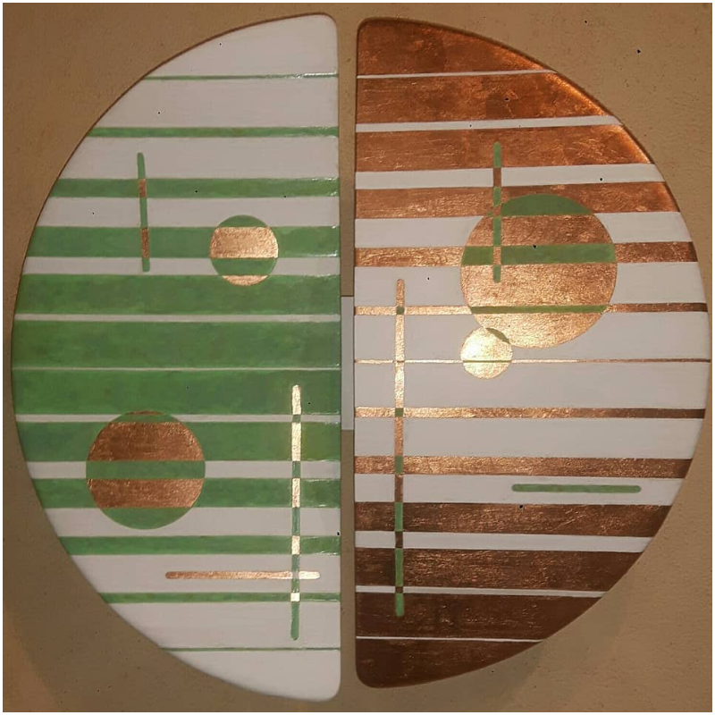 Peinture acrylique et feuilles de cuivre sur toile de lin enduite sur bois